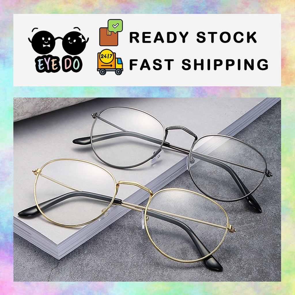 Clear Stock Fashionn Bingkai Cermin Mata Vintage Round Spectacles Shopee Malaysia