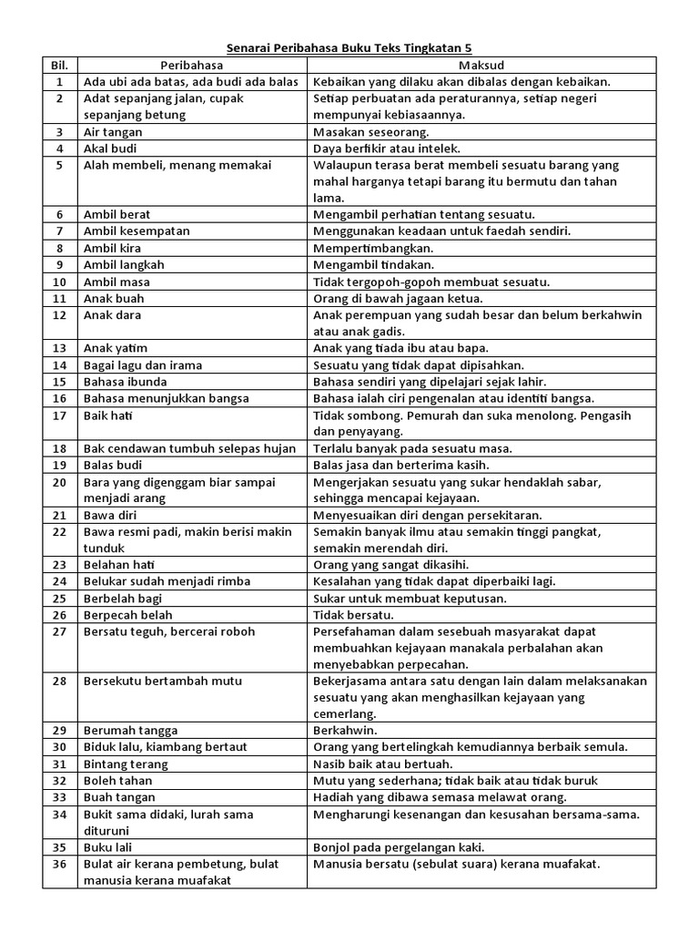 Senarai Peribahasa Buku Teks Tingkatan 5 Kssm Pdf